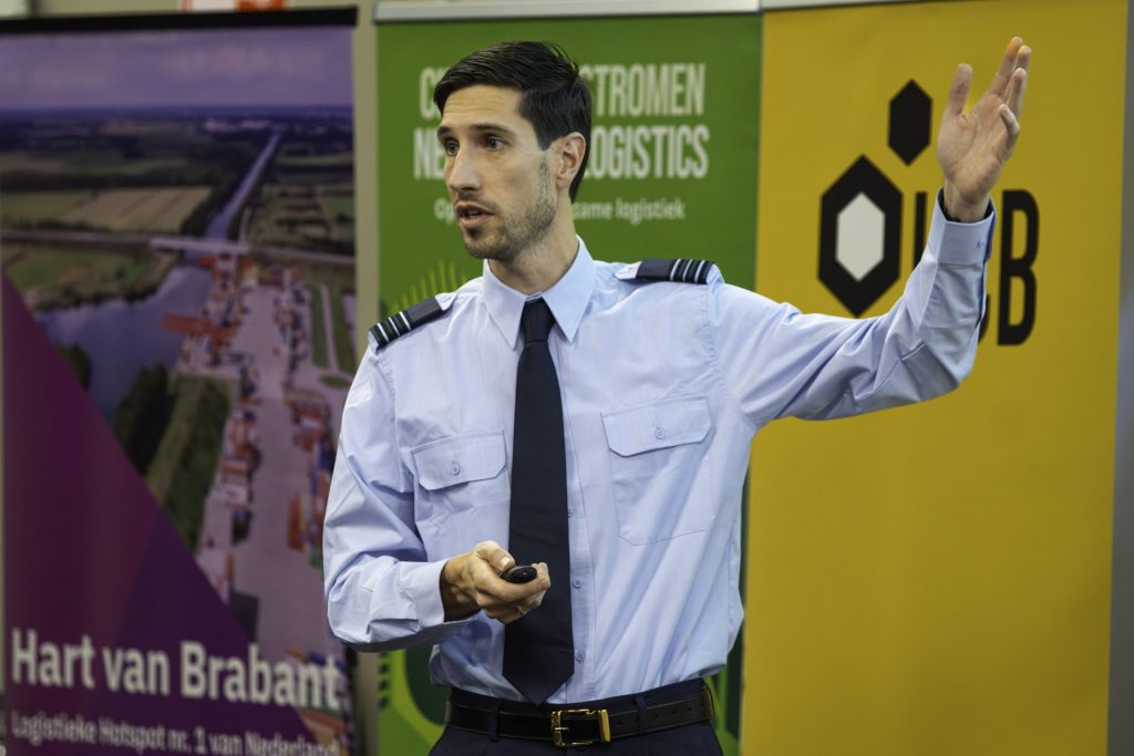 De middag werd geopend door keynote speaker Bram Westerweel van de Nederlandse Defensie Academie. Als Associate Professor in Supply Chain Management bij de Faculteit Militaire Wetenschappen deelde hij zijn expertise over de rol van data en slimme algoritmes in defensielogistiek. Betrouwbaarheid, complexiteit en anticiperend vermogen komt ook in de civiele logistiek voor, maar gaat bij defensie gepaard met veel meer onzekerheden rondom timing, tijdsduur en taakstelling. Daardoor zijn er op thema’s als ‘reductie afhankelijkheden’, ‘opslag en distributie’ en ‘last mile delivery’ waardevolle lessen te trekken uit de civiele context. Veel van deze onderwerpen zijn dan ook terug te vinden in actuele projecten van TKI Dinalog, wat de relevantie en het onderlinge leereffect tussen beide werelden onderstreept.