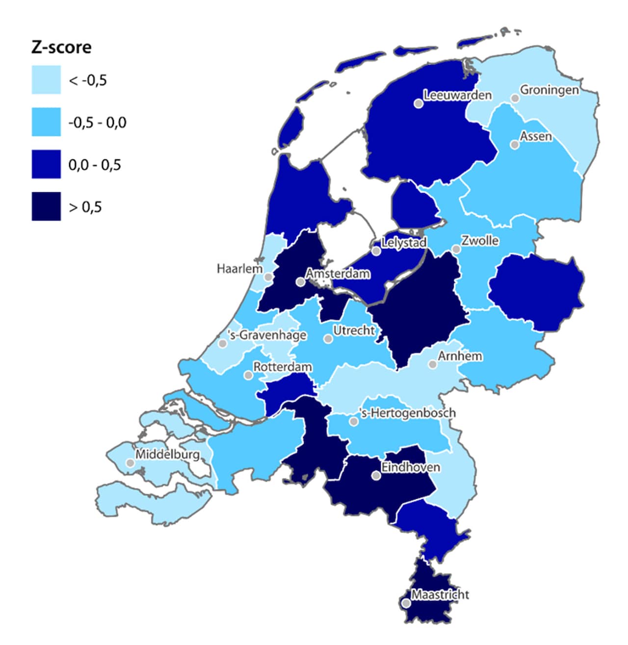Gemiddelde z-score van arbeidsproductiviteit en transitiescore