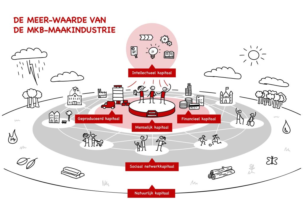 Tijdens de masterclasses gingen de deelnemers actief aan de slag met het meervoudig waardecreatiemodel. Marleen Janssen Groesbeek, lector Sustainable Finance & Accounting bij Avans Hogeschool, licht toe: “Dit model helpt bedrijven waarde te creëren op zes gebieden: financieel, geproduceerd, intellectueel, menselijk, sociaal en natuurlijk kapitaal.”