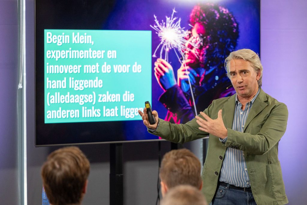 Onder leiding van dagvoorzitter Anne-Marie Fokkens nam Menno het publiek mee in de snel veranderende wereld van technologie en klantbehoeften. Hij deelde zijn visie op leiderschap binnen de context van de digitale transformatie. Deze is gebaseerd op de balans tussen data en menselijke creativiteit. Technologie speelt een cruciale rol, maar menselijk inzicht en verbinding zijn de échte drijvende krachten. Om toekomstbestendig te zijn moeten organisaties verder kijken dan alleen technologie. Ze moeten ook hun cultuur inrichten op het stimuleren van innovatie.