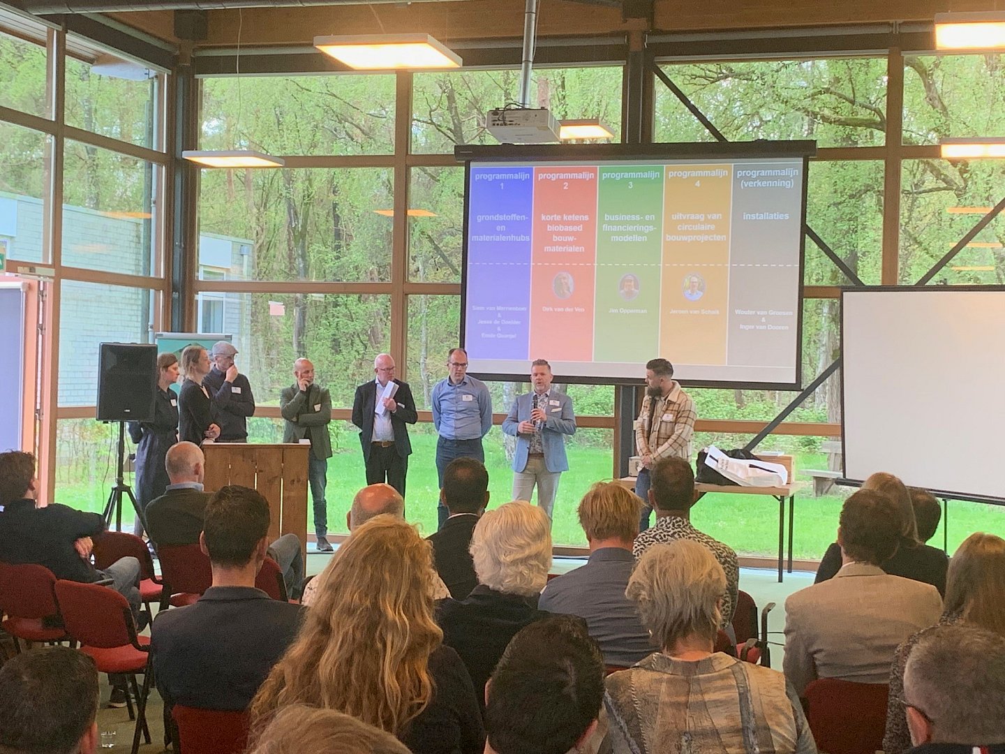 Op donderdag 18 april verzamelden meer dan 90 mensen vanuit bouwers, coöperaties, financiers, kennisinstellingen, overheden en clusters zich bij Eigentijds Erf in Westelbeers voor de werksessie van Circulair Bouwend. Samen leverden ze waardevolle en inspirerende input om programmalijnen verder in te vullen, projecten te ontwikkelen en verdere connecties te leggen met lopende en nieuwe acties. Bas Kapitein van Midpoint Brabant, netwerkpartner van ENZuid, verwelkomde de aanwezigen. In zijn aftrap benadrukte hij de urgentie voor circulair bouwen met enerzijds de opgave voor Zuid-Nederland om 175.000 woningen te bouwen voor 2030 en anderzijds de ambitie om te versnellen naar een circulaire economie. Programmaleider Circulair Bouwend Jeroen Kruithof maakte duidelijk dat de impact van circulair bouwen niet stopt bij CO2 reductie maar dat het effect heeft op veel meer maatschappelijke opgaven. Download hier de presentatie van Jeroen Kruithof.