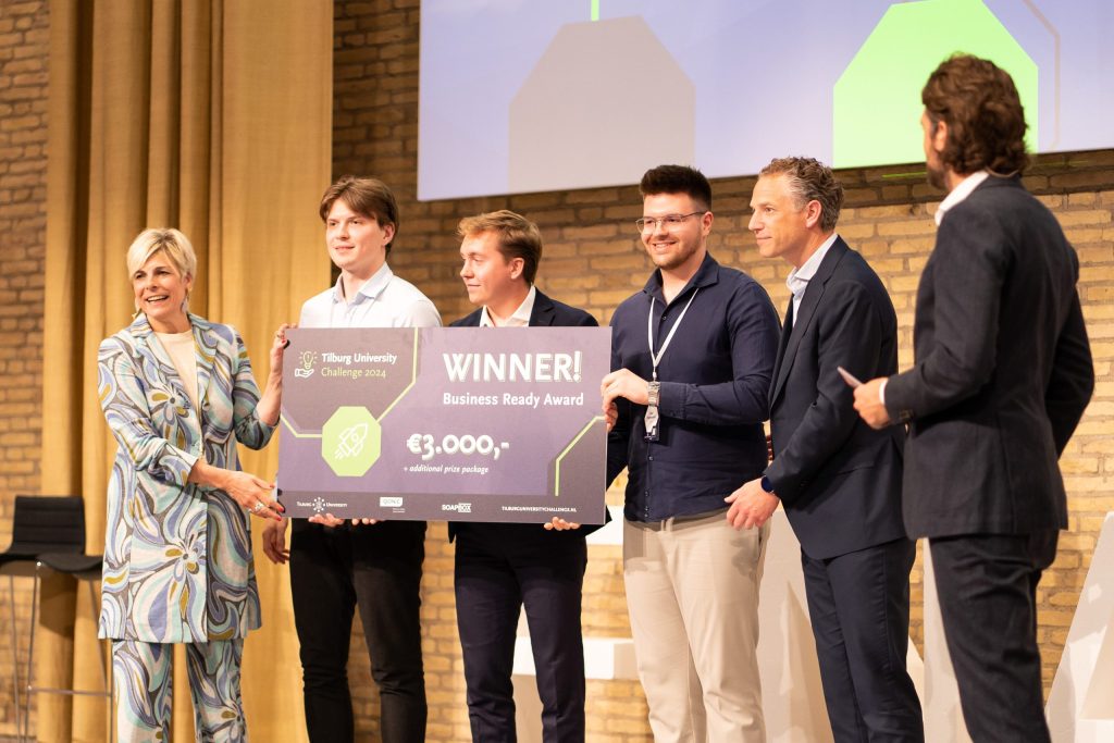De finale van de Tilburg University Challenge zit erop, met drie studententeams als winnaars. Alan Fiszerowicz, Sebastian Paniak en Bartlomiej Babinski namen namens Meterd de Business Ready Award in ontvangst. De Ideation Award ging naar Mattia Sferrazza en Prakhar Tiwari voor hun project NextGenVisits. Jacobo Valencia, Harris Kristanto en Ariana Montoya, die samen Homu hebben ontwikkeld, hebben de Audience Award gewonnen.