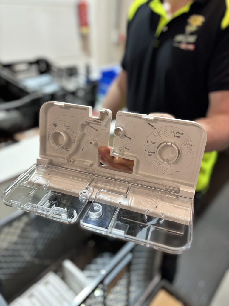 Innoseal maakt zoveel mogelijk zelf. De kern in het midden van een rol tape spuitgieten ze bijvoorbeeld in eigen huis. Ook alle plastic onderdelen van de dispenser produceren ze zelf. Dat doet het bedrijf met een compacte organisatie. Door slimme automatiseringen bracht Aarts de personeelsomvang terug van veertien naar vijf mensen. Twee werken op kantoor en voor productie en assemblage zijn drie mensen nodig.